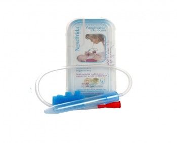 NoseFrida to szwedzki aspirator do usuwania wydzieliny z nosa podczas infekcji górnych dróg oddechowych. Dla dzieci, które jeszcze nie opanowały umiejętności dmuchania nosa, nawet dla maluszków od pierwszego dnia życia! Aspirator NoseFrida GŁĘBOKO OCZYSZCZA NOS, jest: Skuteczny. W niezwykle prosty sposób usuniesz katar z nosa swojego maluszka i tym samym pomożesz mu swobodnie oddychać, spokojnie jeść i spać. Olbrzymia ulga na dziecka i koniec zmartwień rodziców.: Bezpieczny. Specjalny kształt końcówki aspiratora chroni błonę śluzową nosa. Bez względu na siłę ssania opiekuna, aspirator usuwa wyłącznie wydzielinę z nosa. Wreszcie możesz zapomnieć o horrorze korzystania z gruszek do nosa oraz o czerwonym bolącym od obtarć nosku.: Higieniczny. Frida jest bardzo łatwa w czyszczeniu – wystarczy strumień gorącej wody i nieco płynu do mycia naczyń. Ponadto przezroczysta obudowa pozwala sprawdzić czy aspirator jest już czysty a dodatkowo możesz ocenić wydzielinę z nosa i postępy w leczeniu. Wymienne filtry higieniczne są dołączone do każdego pakietu sprzedażnego oraz są dostępne do kupienia osobno.: Te cechy sprawiają, że coraz to więcej rodziców przekonuje się do FRIDY. Zalety aspiratora dostrzegają także pediatrzy, którzy polecają ten produkt w procesie leczenia kataru, jako skuteczny i szybko przynoszący ulgę dzieciom.
