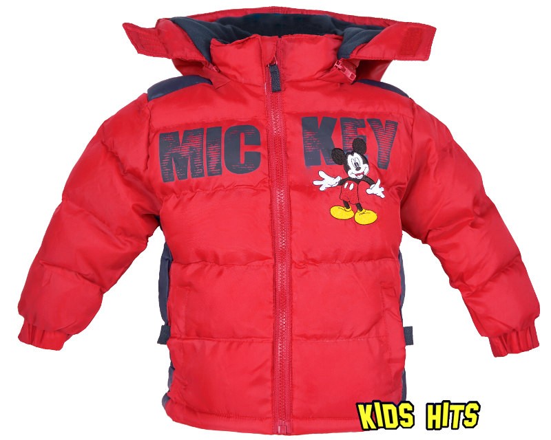 Kurtka zimowa Myszka Miki "Mickey" czerwona Ciepła, pikowana kurtka zimowa Myszka Miki z kapturem. Wyposażona w dwie praktyczne kieszenie. Kaptur jest odpinany (na zamek błyskawiczny). Wnętrze kaptura jest wykonane z bardzo przyjemnego i ciepłego polaru. Postać Myszki Miki jest haftowana. Kurtka dobrze chroni przed mrozem i silnym wiatrem. Oryginalna kurtka zimowa Disney Skład: 100% poliester Rozmiar: 8 lat (128 cm) Kids Hits - oryginalna odzież dla dzieci i dorosłych