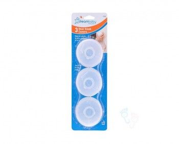 Nakładki zabezpieczające na gałki drzwi firmy Dreambaby. Dla dorosłych łatwe do złapania, ściśnięcia i przekręcenia, ale zbyt skomplikowane dla małych rączek dziecka. Zapobiegają przed wchodzeniem ciekawskich szkrabów w rejony niebezpieczne takie jak: pralnia, łazienka, garaż, piwnica itp. Pasuje do większości standardowych gałek od drzwi. Dzieci gdy dorastają są ciekawe wszystkiego i wszystkim się interesują. W celu zapewnienia bezpieczeństwa twojmu dziecku polecamy produkty firmy Dreambaby. To dzięki tym produktom nie musisz się już więcej martwić o bezpieczeństwo twojej pociech - chroń ja śwadomie. Opakowanie zawiera 3 szt.